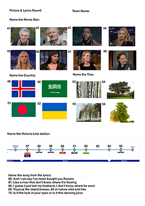 Looking for a full pub quiz with questions from all the main quiz categories, a picture round and a music round?